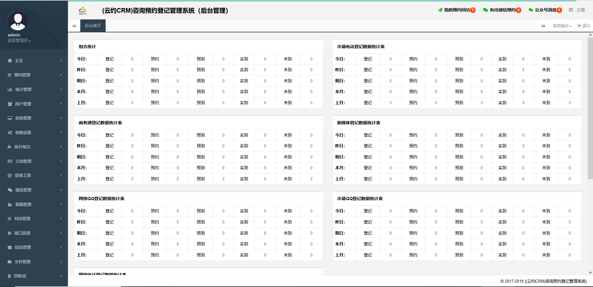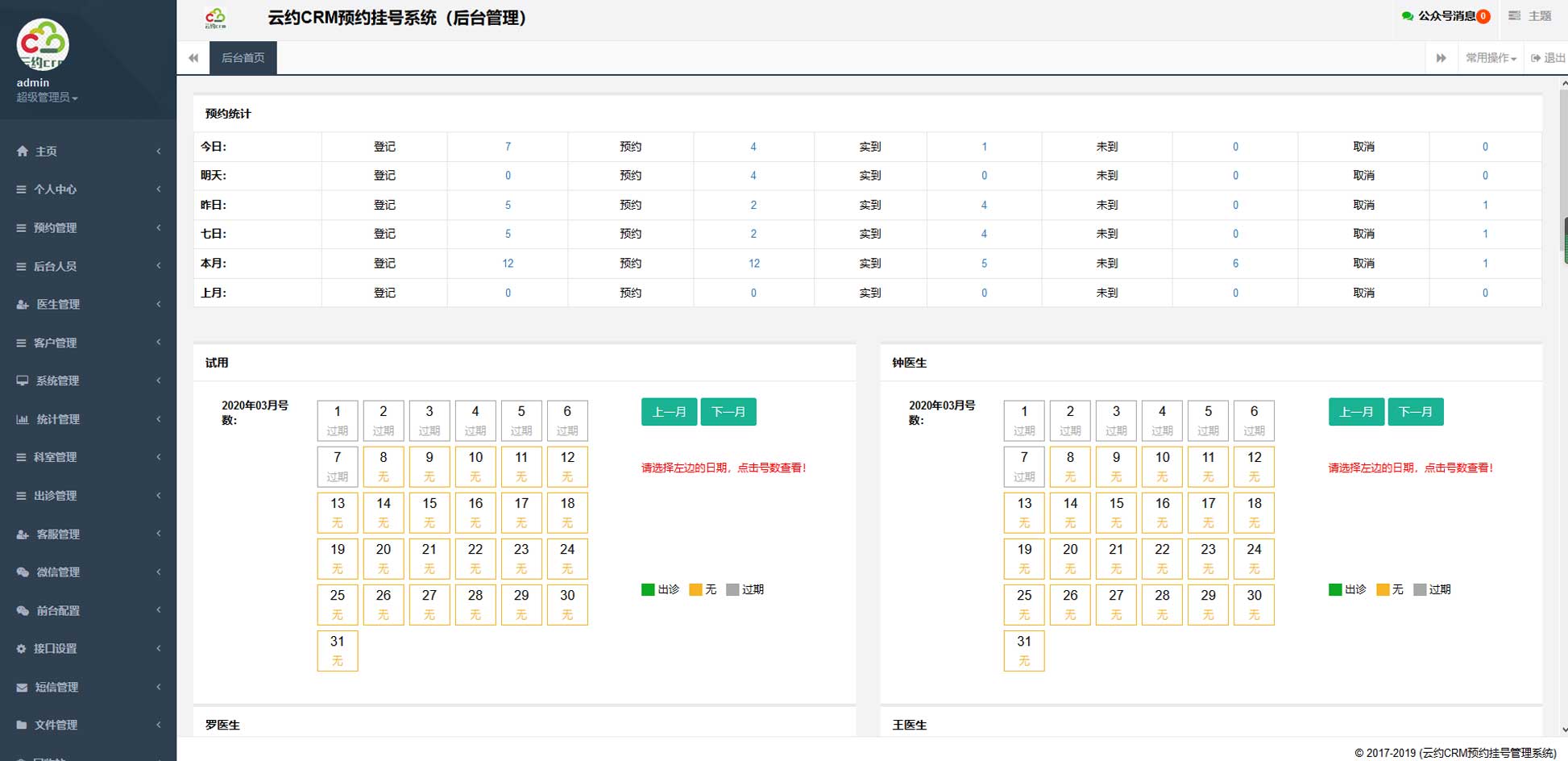 云约CRMtp6+php7.3+mysql5.7(导诊(分诊)/后台登记)预约管理系统