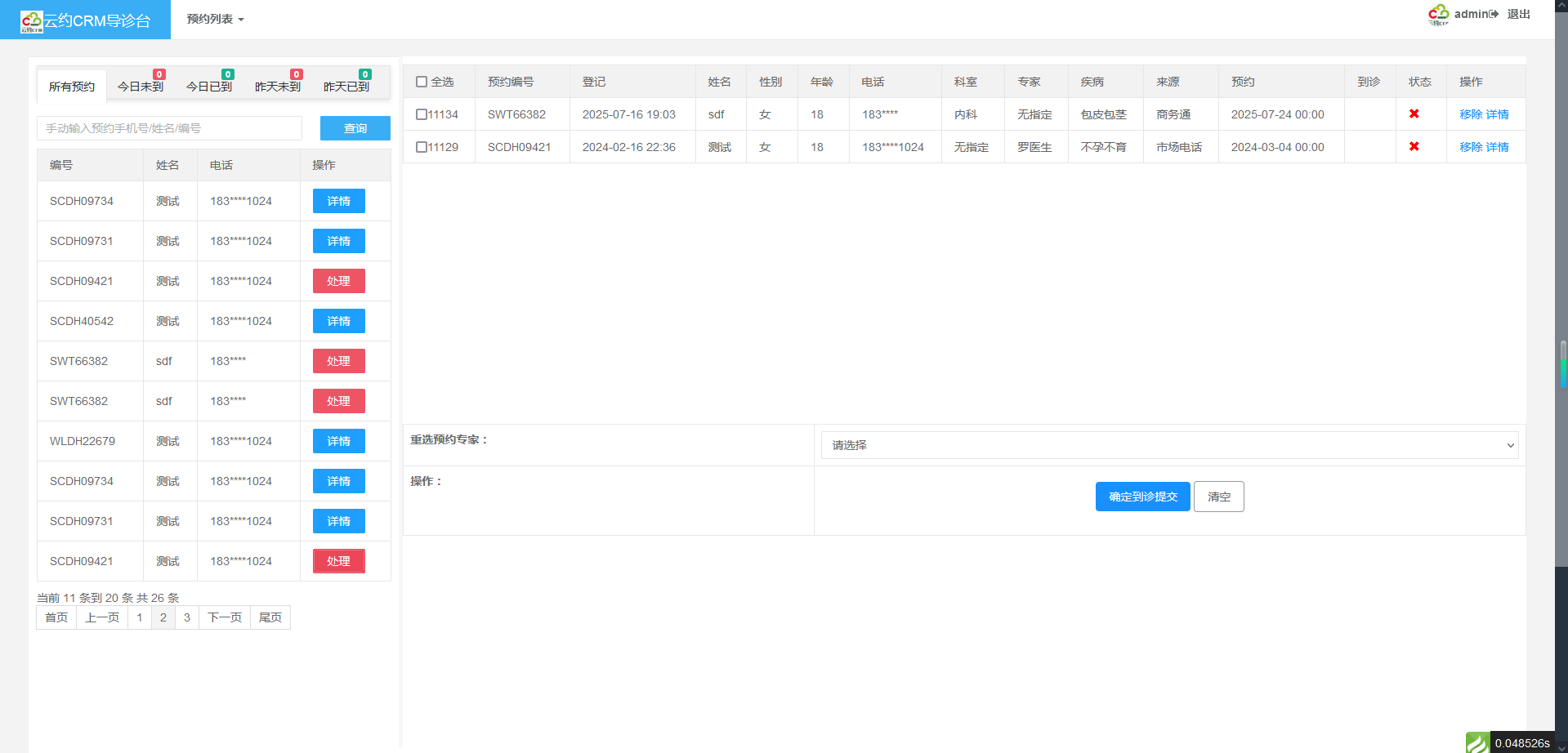 云约CRMtp6+php7.3+mysql5.7(导诊(分诊)/坐诊/后台登记)预约管理系统