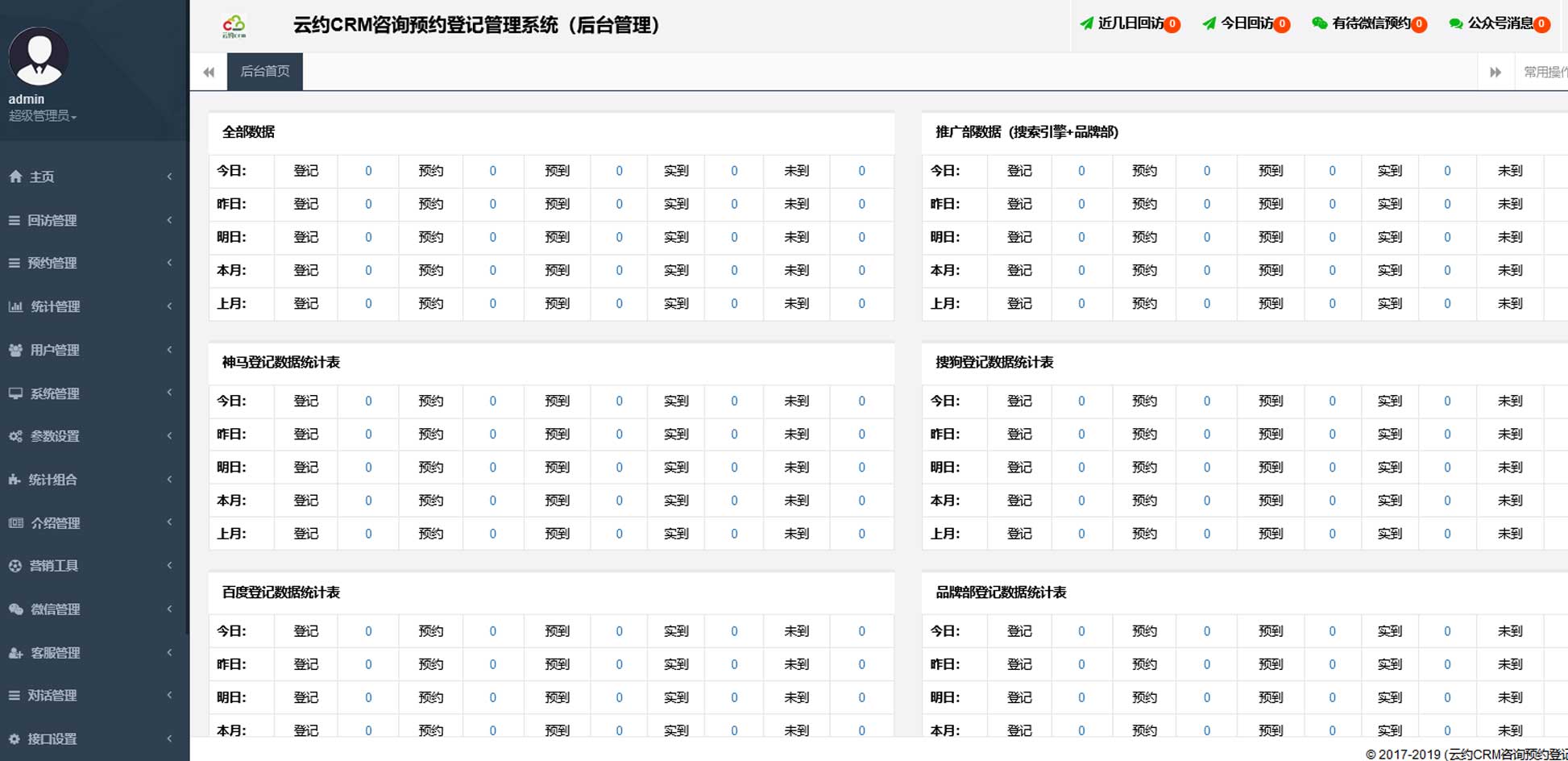 云约CRMtp6+php7.3+mysql5.7(导诊(分诊)/后台登记)预约管理系统